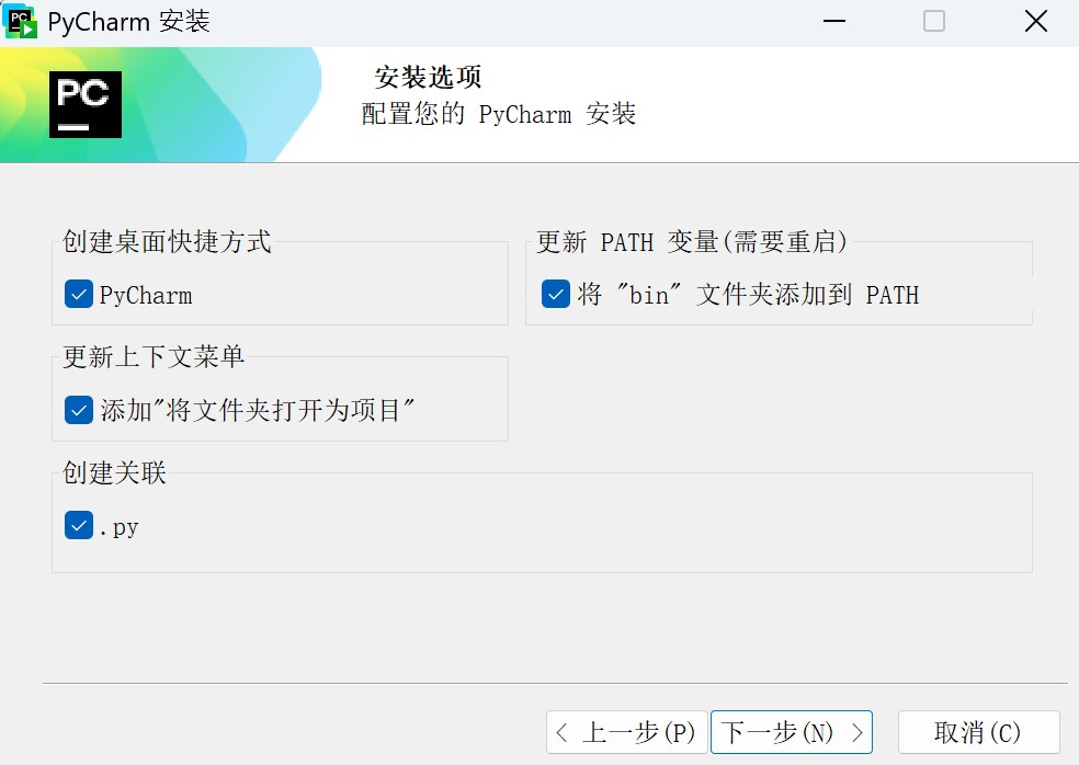 安裝 PyCharm 時,安裝畫面是簡体中文,不過安裝好就是變成英文版本。接下來將下面四個選項全都打勾